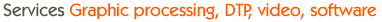 We dispose of several high-speed connection and closely cooperating modern DTP stations capable of processing graphical or video data in any given format and on all platforms (MAC, PC, Linux, UNIX, and others). We utilize the original documents or prepare new graphic designs of not only manuals, but also catalog sheets, catalogs, leaflets, etc.